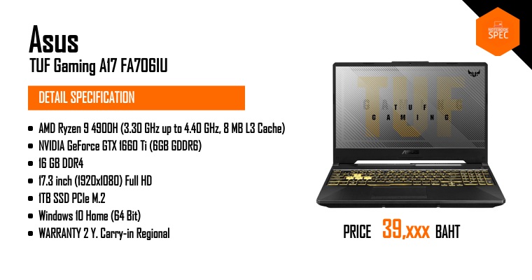Preview - ASUS TUF Gaming A15/A17 (FX506) สเปก AMD Ryzen 4800H + RTX 2060 แรงสุดคุ้มสุด เริ่ม 2x,xxxJan 16, 2020 -