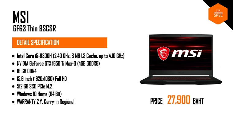 Review - MSI GF63 8RD เกมมิ่งโน้ตบุ๊คขอบจอบาง สเปคแรง ราคาคุ้ม i7-8750H + GTX 1050TiJul 24, 2018 -