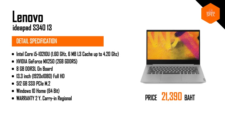 Lenovo - IdeaPad S340 รุ่นใหม่จอ 13.3 นิ้ว, Intel Core i Gen 10 (Comet Lake) และ NVIDIA MX250Sep 17, 2019