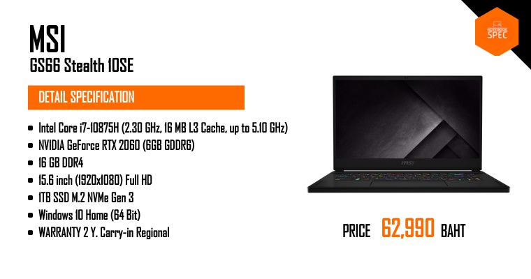 Preview - MSI GS66 Stealth ดีไซน์ใหม่ สเปก Core i Gen 10 H + NVIDIA รุ่นใหม่ ฟีเจอร์จัดเต็ม @CES2020Jan 7, 2020 -