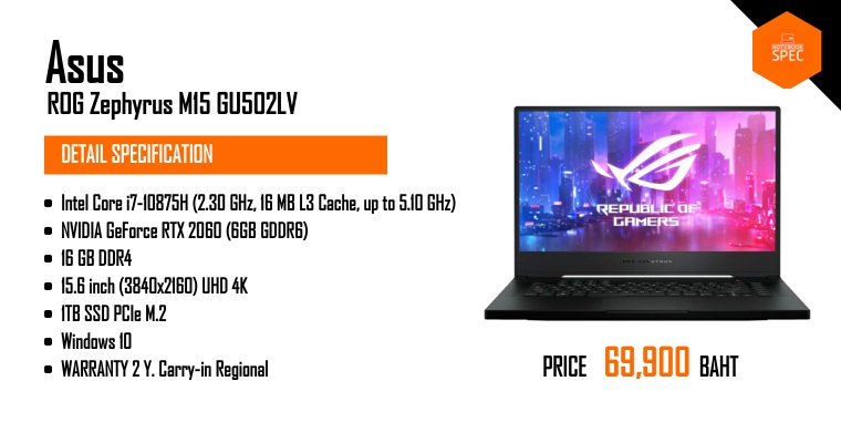 Unbox - ASUS ROG Zephyrus M15 เบา 1.9 โล จอเทพ 4K สเปก i7-10875H + RTX 2060 + RAM 16GB + SSD 1TBJul 22, 2020 -