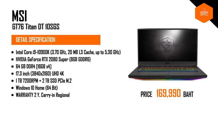 3 สิ่ง ! ใน MSI GT76 Titan สุดยอดโน๊ตบุ๊คเล่นเกมหลักแสนเหนือชั้นกว่า Gaming Notebook ทั่วไปAug 4, 2019 -