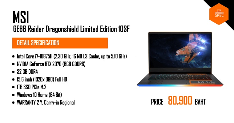 Review - MSI GE66 Raider สเปก i7-10750H / RTX 2070 / RAM 16GB / SSD 1TB / จอ IPS 240Hz ราคาแค่ 65,900 บาท ได้ดีไซน์และฟีเจอร์สุดล้ำJul 31, 2020 -