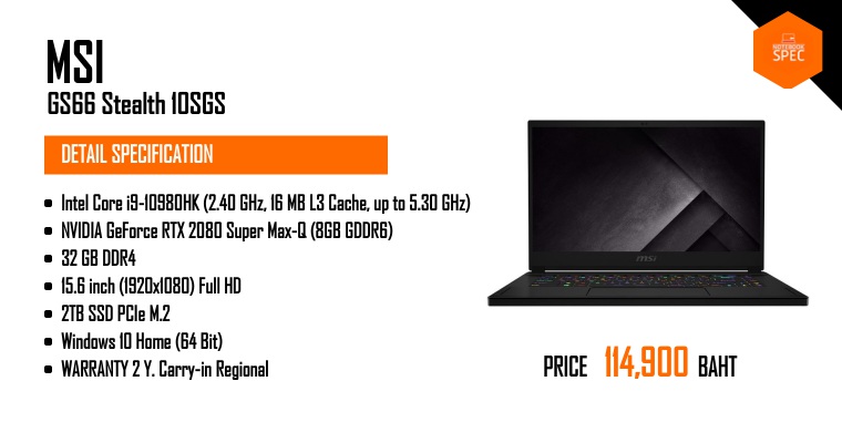 Review – MSI GS66 Stealth เรียบ เฉียบ แรง ลื่นสเปก i9-10980HK + RTX 2080 Super Max-Q + จอ IPS 300HzApr 26, 2020 -