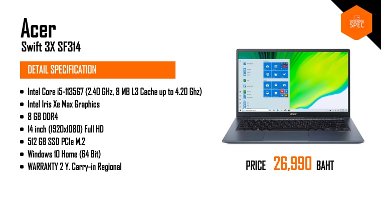 Review Acer Swift 3X สเปก i5-1135G7 + Iris Xe Max (DG1) การ์ดจอ Intel ที่แรงสุด เล่นเกมได้ลื่นกว่าNov 15, 2020 -