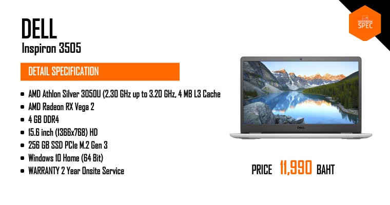 รีวิว Dell Inspiron 15 3505 สเปก AMD ราคา 11,900 – 19,900 บาท จอ 15.6″ IPS ประกัน 2 ปี On-SiteJan 17, 2021 -