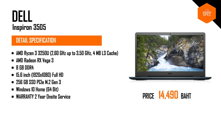 รีวิว Dell Inspiron 15 3505 สเปก AMD ราคา 11,900 – 19,900 บาท จอ 15.6″ IPS ประกัน 2 ปี On-SiteJan 17, 2021 -