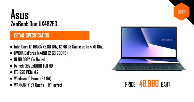 Review - ASUS ZenBook Duo UX481 โน๊ตบุ๊ค 2 จอ สเปก Core i Gen 10 + MX250 แรงลื่น ราคา 34,990 บาทOct 20, 2019 -