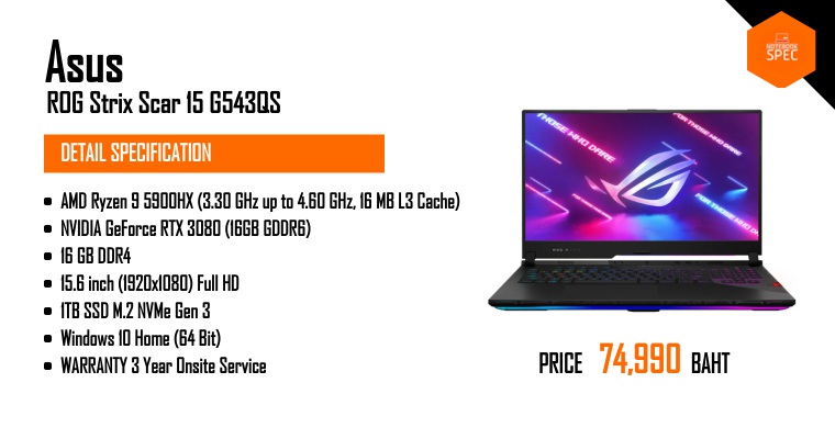 รีวิว ASUS ROG Strix Scar 15 : i9-12900H + RTX 3070 Ti จอ 300Hz ฟีเจอร์ Gaming eSport จัดเต็มFeb 1, 2022 -
