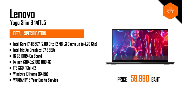 รีวิว Lenovo YOGA Slim 7i Pro สเปก Core I Gen 11 + MX450 จอ IPS 2.2K เบา 1.3 โล เริ่ม 34,990 บาทMay 20, 2021