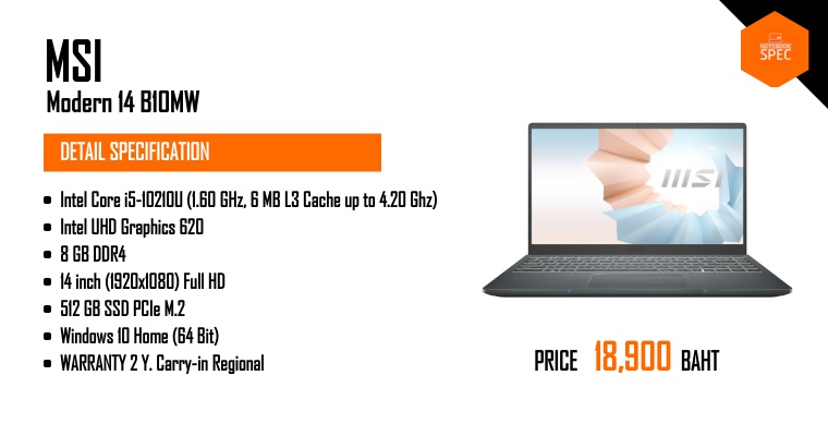 MSI Modern 14 พลัง Intel Core i5 จอกาง 180 คีย์บอร์ดมีไฟ ได้ MS Office แค่ 16,490May 10, 2025 -