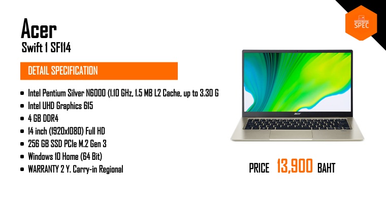Acer - เปิดตัว Swift 1 รุ่นใหม่ มาพร้อมกับชิปประมวลผล Pentium N3710 สถาปัตยกรรม 'Gemini Lake'Apr 10, 2018