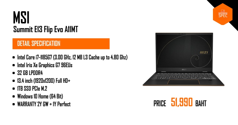 รีวิว MSI Summit E13 Flip Evo สเปก i5/i7 Gen 11 แพลฟอร์ม EVO โน้ตบุ๊คพับจอมีปากกาเน้นใช้งานมืออาชีพMay 2, 2021 -