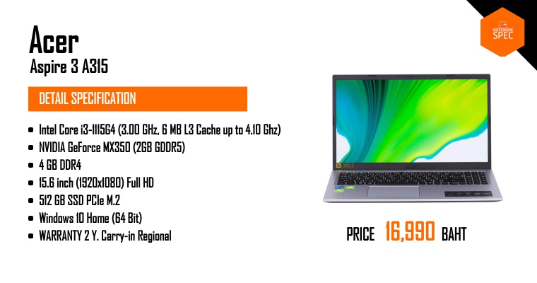 Acer Aspire 3 A315 Intel Gen 12 สวยบางจอใหญ่ การ์ดจอแยก ราคาเบาJun 4, 2022
