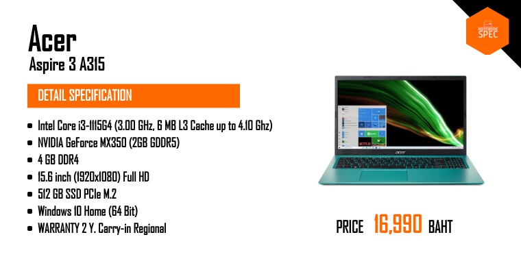 Acer Aspire 3 A315 Intel Gen 12 สวยบางจอใหญ่ การ์ดจอแยก ราคาเบาJun 4, 2022