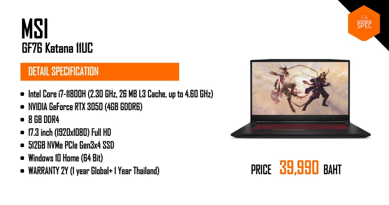 รีวิว MSI Katana GF76 สเปก i7-11800H + RTX 3060 Max-P จอ 17.3″ IPS 144Hz สวยเฉียบ แรงลื่นเล่นเกมสะใจJun 12, 2021 -