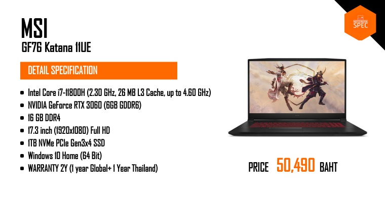 รีวิว MSI Katana GF76 สเปก i7-11800H + RTX 3060 Max-P จอ 17.3″ IPS 144Hz สวยเฉียบ แรงลื่นเล่นเกมสะใจJun 12, 2021 -