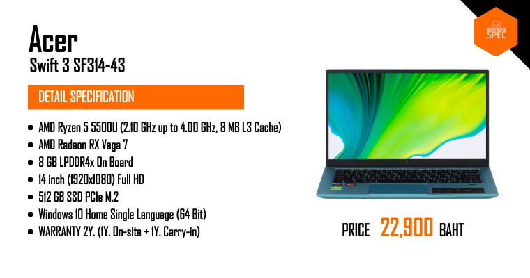 รีวิว Acer Swift X สเปก Ryzen 5 + RTX 3050 จอ 14″ สาย Creator มี Office แท้ ประกัน 3 ปี On-SiteSep 17, 2021 -