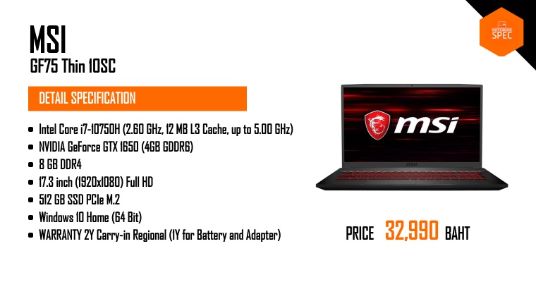 Review - MSI GF75 Thin สเปก i7-10750H + RTX 2060 + RAM 16GB + SSD 512GB + จอ 17.3 IPS 120HzApr 29, 2020 -