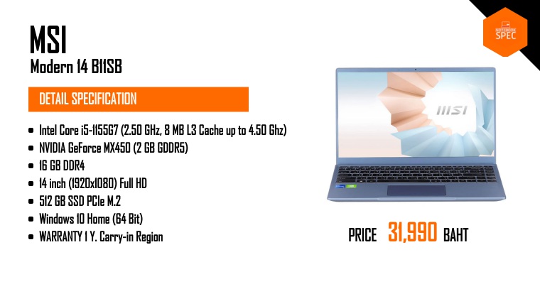 MSI Modern 14 พลัง Intel Core i5 จอกาง 180 คีย์บอร์ดมีไฟ ได้ MS Office แค่ 16,490May 10, 2025 -