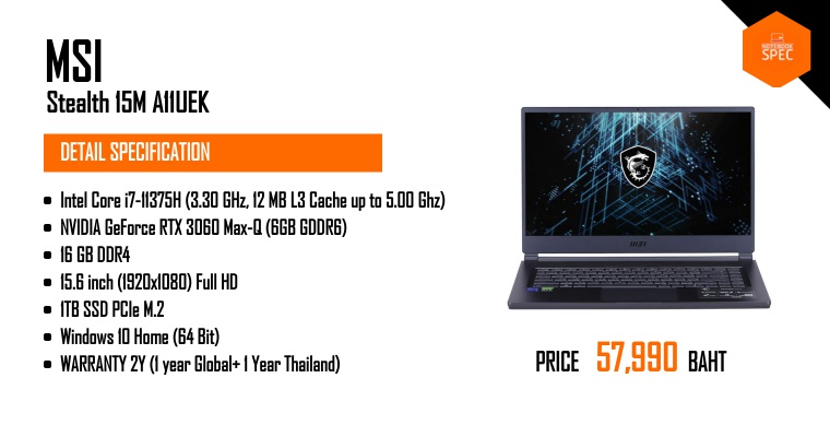 MSI Stealth 15M เกมมิ่งโน๊ตบุ๊ค RTX3060 แรง เบาแค่ 1.8Kg ได้จอ 144HzJun 23, 2022 -