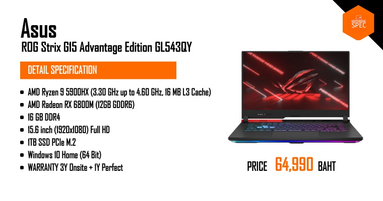 รีวิว ASUS ROG Strix G15 Advantage Edition สเปก Ryzen 9 5900HX + Radeon RX 6800M จอ 15.6" QHD 165Hz ราคา 59,990 บาทAug 4, 2021 -