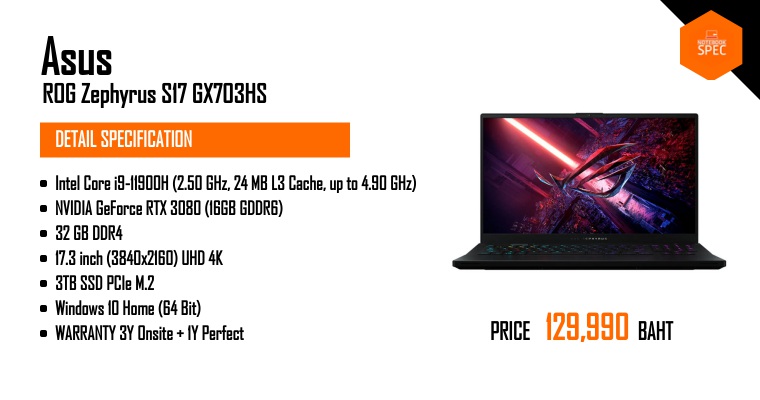 รีวิว ASUS ROG Zephyrus S17 สเปก i9 + RTX 3080 จอ 17.3″ 4K 120Hz แรงสุดๆ บาง 19.9 มม. เบา 2.6 กก.Oct 31, 2021 -