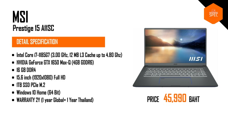 รีวิว MSI Prestige 15 A11SC สเปคต่อราคาคุ้มค่า งานหนักเบาเอาอยู่และหนักแค่ 1.69 กก. ค่าตัว 45,900 บาทFeb 19, 2022 -