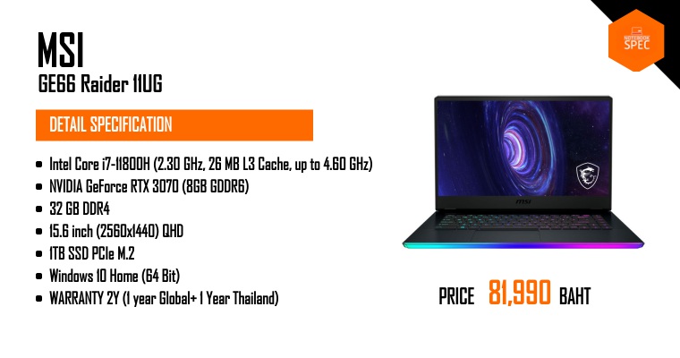 รีวิว MSI GE66 Raider จอ OLED 4K สเปก i7-11800H + RTX 3060 / RTX 3080 ดีไซน์ล้ำและฟีเจอร์ Gaming เน้นๆ ราคา 82,990 บาทDec 26, 2021 -
