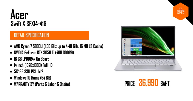 รีวิว Acer Swift X สเปก Ryzen 5 + RTX 3050 จอ 14″ สาย Creator มี Office แท้ ประกัน 3 ปี On-SiteSep 17, 2021 -