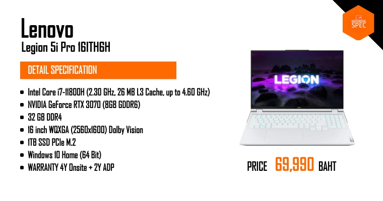รีวิว Lenovo Legion 5i Pro ขาวดี สเปก i7-11800H + RTX 3070 จอ 16″ QHD+ 165Hz ประกันเทพ 4 ปี On-siteJan 7, 2022 -