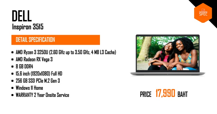 รีวิว Dell Inspiron 15 3505 สเปก AMD ราคา 11,900 – 19,900 บาท จอ 15.6″ IPS ประกัน 2 ปี On-SiteJan 17, 2021 -