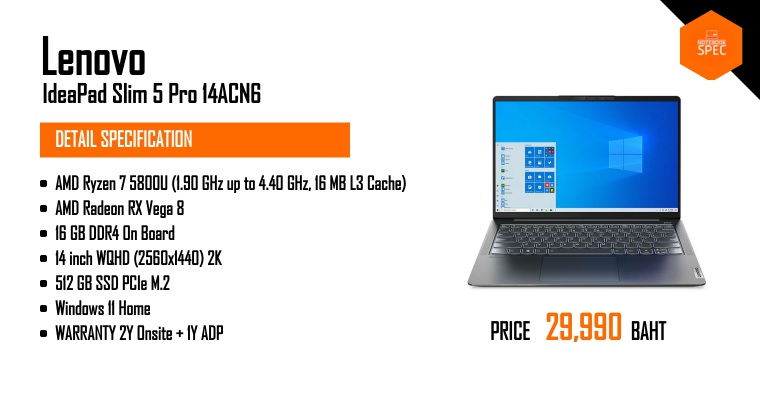 รีวิว Lenovo IdeaPad Slim 5 Pro 16 สเปก Ryzen 7 5800H + GTX 1650 จอ16″ QHD 120 Hz สาย CreatorSep 29, 2021 -