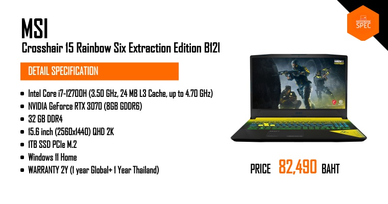 รีวิว MSI Crosshair 15 Rainbow Six Extraction Edition สเปก i7-12700H + RTX 3070 จอ QHD165HzApr 29, 2022