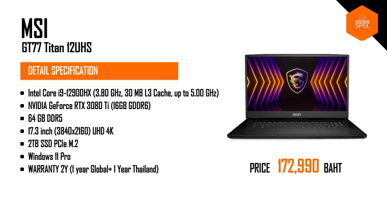 เปิดตัวโน๊ตบุ๊คเกมมิ่ง MSI ล่าสุด Titan GT77 ในงาน Ahead of the curve พลัง Intel 12th HX seriesJun 7, 2022 -