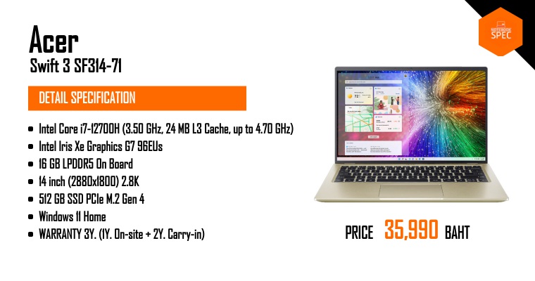 รีวิว Acer Swift 3 จอ 16" FHD IPS สเปก i5/i7 Gen 11 H35 เบา 1.7 โล ได้ Office 2019 เริ่ม 25,990 บาทJun 5, 2021