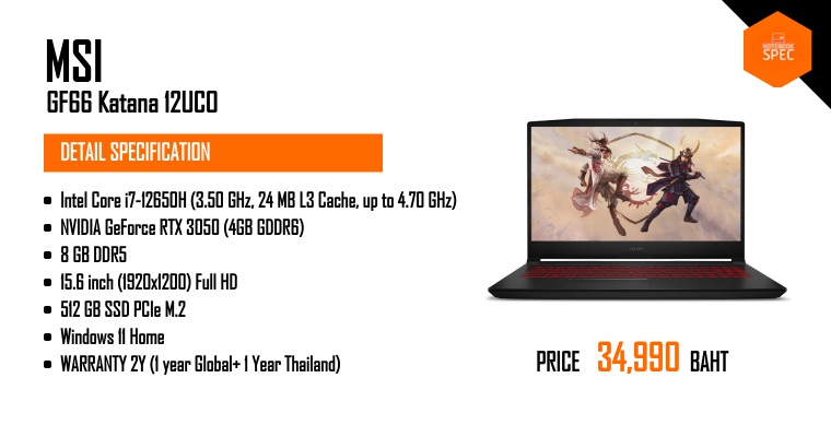 MSI Katana GF66 รุ่นใหม่ สเปก i7 + RTX 3070 ตัวแรง ได้ Special Bundle ไปด้วยNov 10, 2021