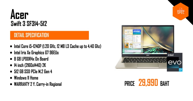 Acer Swift 3 OLED จอ 2.8K สีตรงสดใส คมชัดทุกมุมมอง i7 แรม DDR5 เริ่ม 3 หมื่นนิดๆSep 22, 2022 -