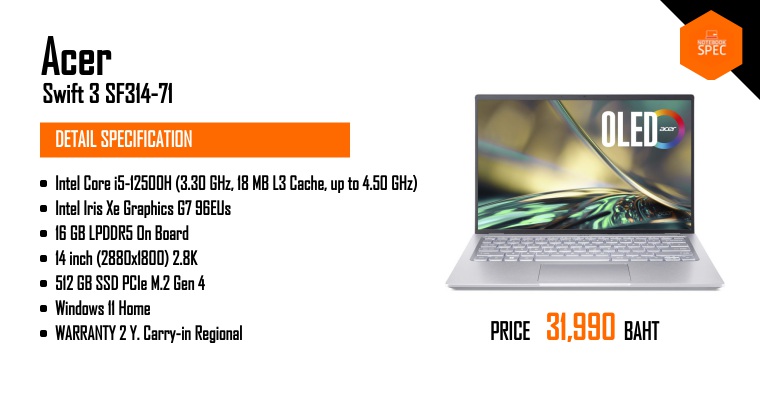 Acer Swift 3 OLED จอ 2.8K สีตรงสดใส คมชัดทุกมุมมอง i7 แรม DDR5 เริ่ม 3 หมื่นนิดๆSep 22, 2022 -