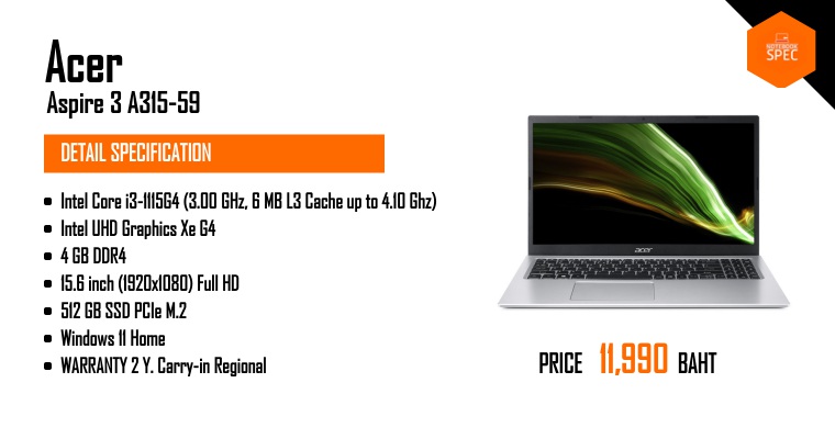 Acer Aspire 3 A315 Intel Gen 12 สวยบางจอใหญ่ การ์ดจอแยก ราคาเบาJun 4, 2022