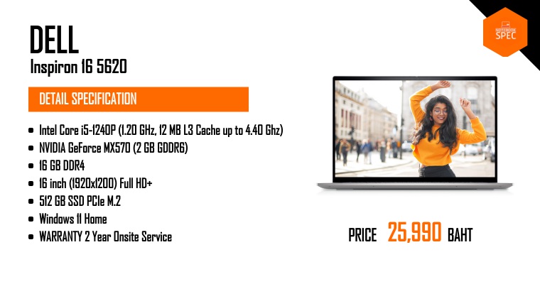 จอใหญ่สีตรง Dell Inspiron 16 5620 คล่องตัว จบได้ทุกงาน แรงไม่ต้องอัพเกรดJul 5, 2023 -