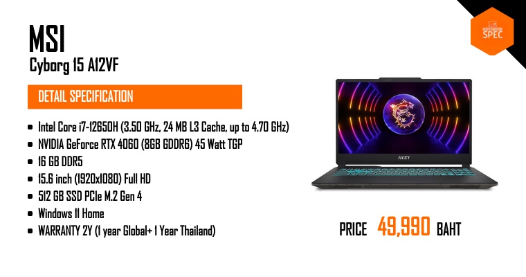 MSI Cyborg 15 ใหม่ สเปคแรงดี โปรแกรมครบ ราคา 34,990 บาท คุ้มกว่าเดิม!! #MSI #Cyborg15Nov 21, 2025 -