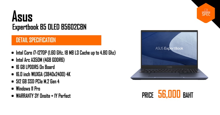 ASUS ExpertBook B5 ใหม่ 2023 บางดี สีสด จอใหญ่ งานและบันเทิงครบ Intel i7+A350Mar 29, 2023 -