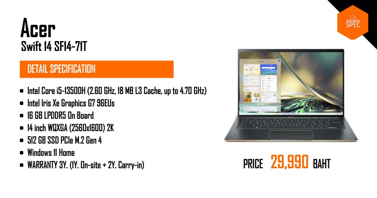 โน๊ตบุ๊คทำงาน งบ 20,000 บาท บางเบา ครบคุ้ม | Acer Swift Lite 14Apr 5, 2025