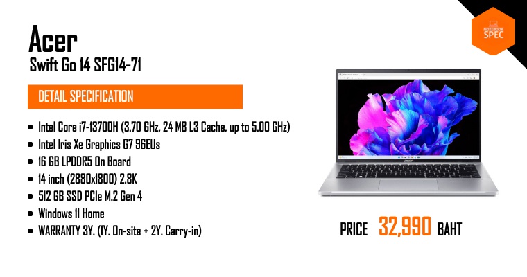 Acer Swift Go 14 AI โน้ตบุ๊คพลัง Snadragon X Plus มี AI ช่วยทำงาน ในราคาเบาๆ #Acer #Snadragon #nbsNov 30, 2024