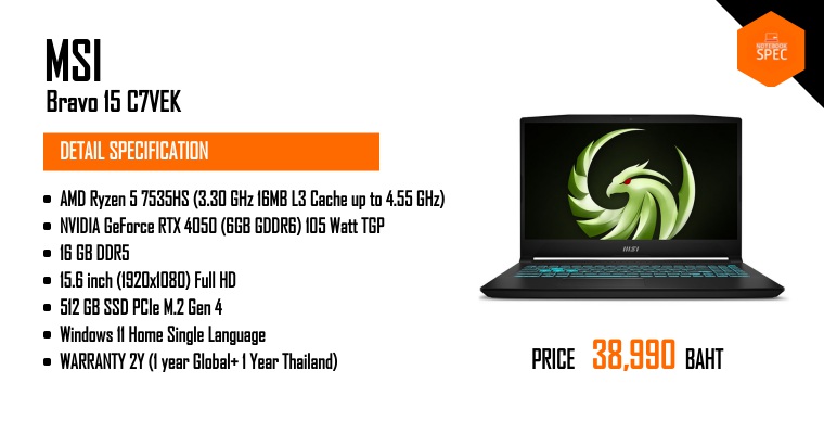 รีวิว MSI Bravo 15 พลัง Ryzen 7 + RTX 4060 คุ้มดี ราคาโดน !!Sep 7, 2023 -