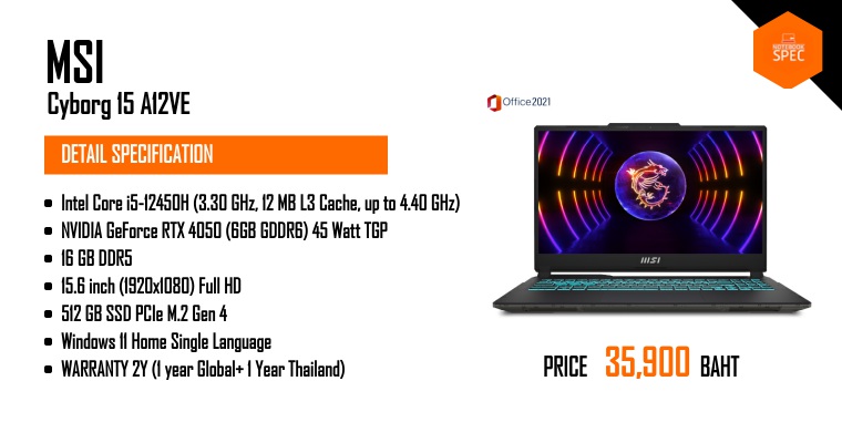 MSI Cyborg 15 ใหม่ สเปคแรงดี โปรแกรมครบ ราคา 34,990 บาท คุ้มกว่าเดิม!! #MSI #Cyborg15Nov 21, 2025 -