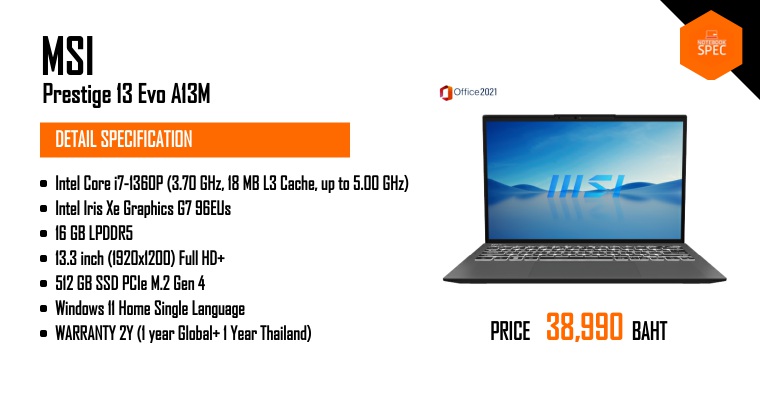 รีวิว MSI Prestige 13 Evo A13M เบาพกง่าย ฟีเจอร์ล้ำน่าใช้!!Aug 8, 2023