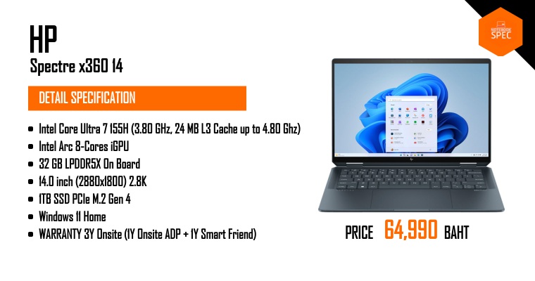 รีวิว HP SPECTRE X360 13 สเปก i7-1165G7 สุดยอด 2-In-1 พรีเมียม Windows 10 Pro ประกัน 3 ปี On-SiteFeb 28, 2021 -