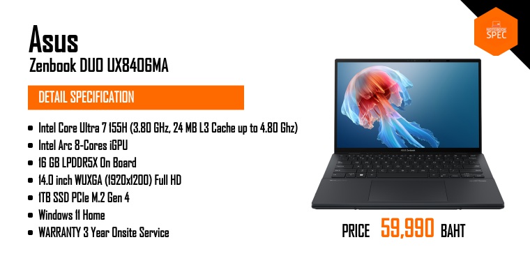ASUS Zenbook DUO UX8406 (2025) โน๊ตบุ๊คสองจอ พลัง Intel Core Ultra ใหม่แรงมาก!Feb 20, 2025 -